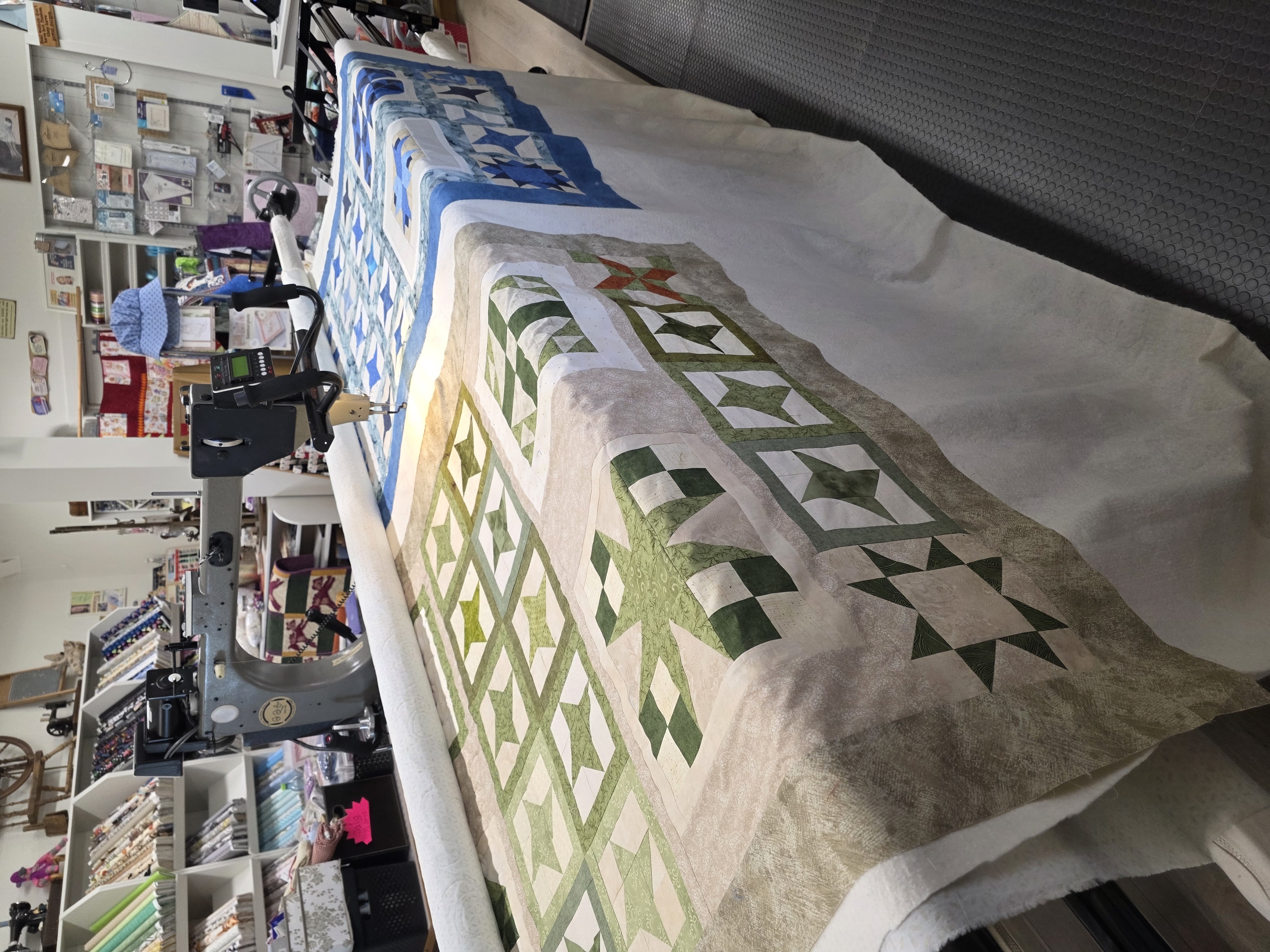 - Longarm tjenester- Custom=tar utgangspunkt i quiltemønsteret/frimotionquilting og kant til kant design (edge-to- edge). Ta kontakt for priser tlf 90276327