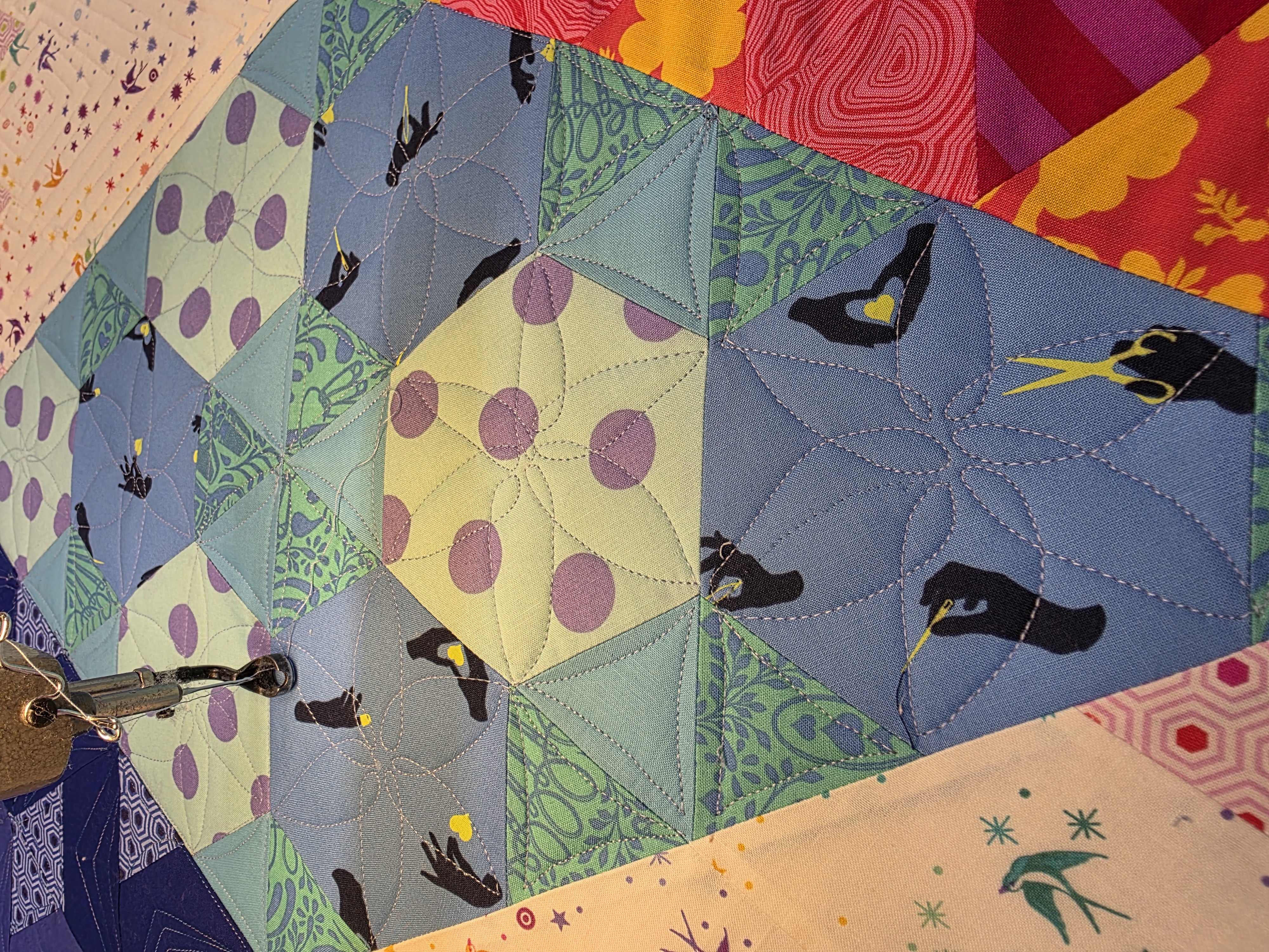 Schmetz topstitch nåler 80/12. Har lenger og større øye til å håndtere de litt tykkere quiltetrådene.
